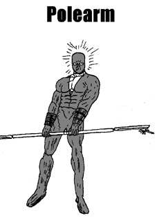 Hi, and welcome to Polearms webpage. What is a Polearm? It is a medeival weapon, but that's not what I mean. Polearm is a comic book character manifestation of me, in other words, how I draw myself in the comic books I draw. What comic books? I write and draw a comic book series based on a bunch of people who were used in military testing in Britain, and escaped. They are strong and fast, due to Nano-machines in their bodies that work with the muscle cells. The picture to the left is Polearm. See the comic page now constructed! Visit it now for more details on this book. Look, they're here! I've now got more pictures, plus the short story up!